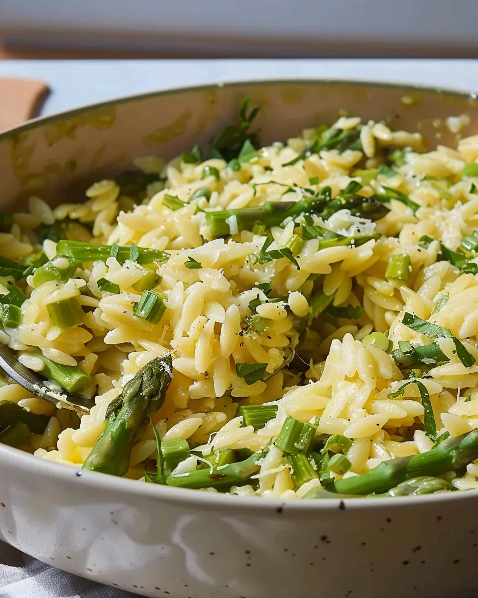 A creamy and delicious dish featuring orzo pasta and fresh asparagus, perfect for an easy weeknight dinner.