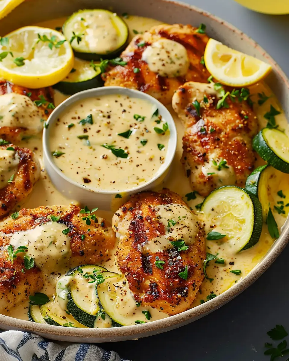 Experience the delightful combination of creamy lemon butter sauce and crispy zucchini in this mouthwatering chicken dish.