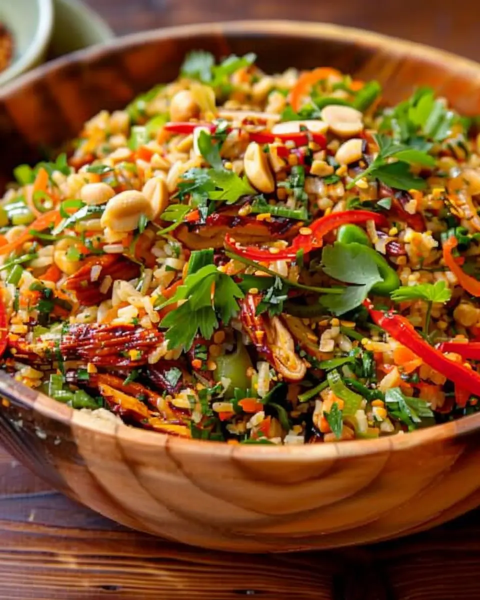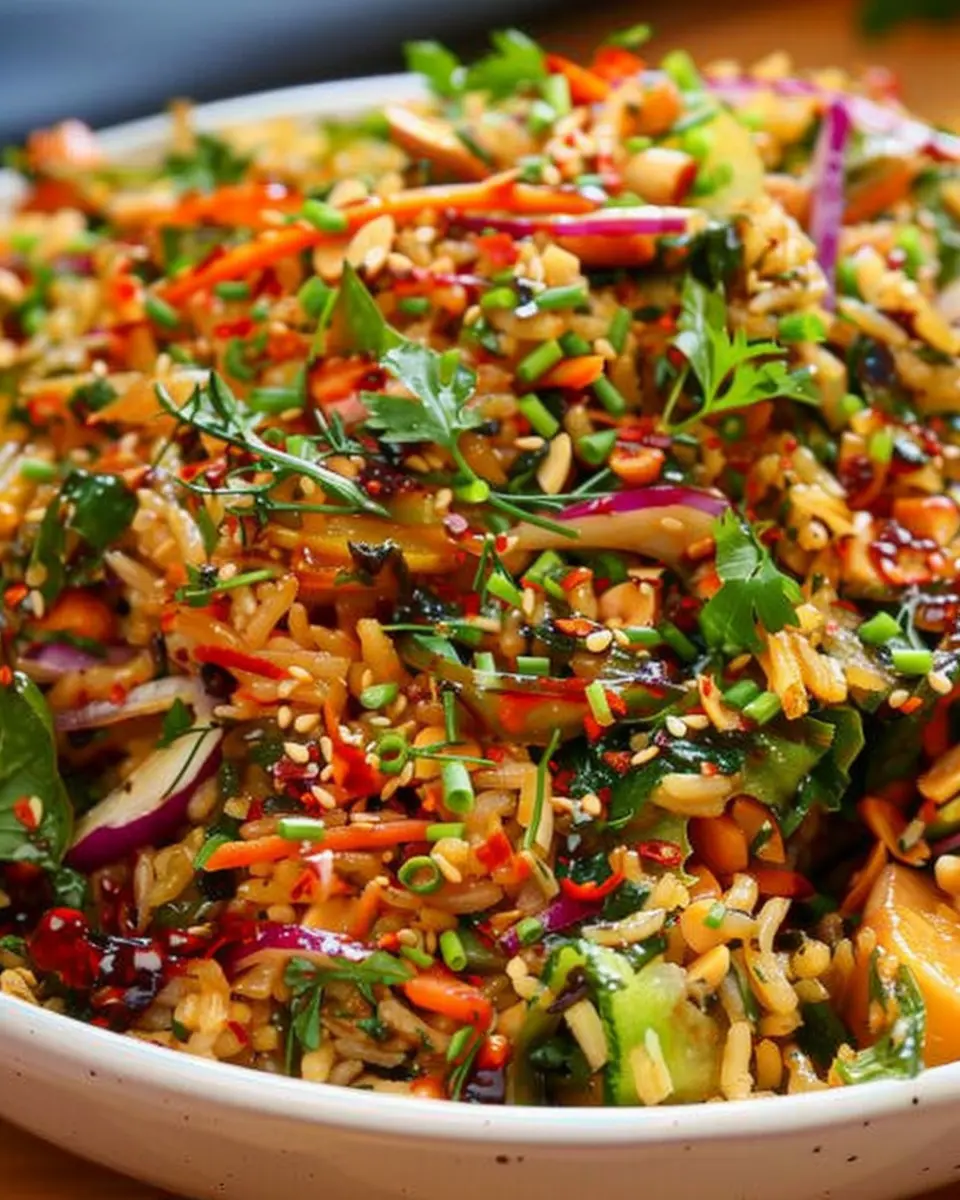 PrintCrispy Rice Salad with Peanut-Chili Dressing: A Delicious Twist