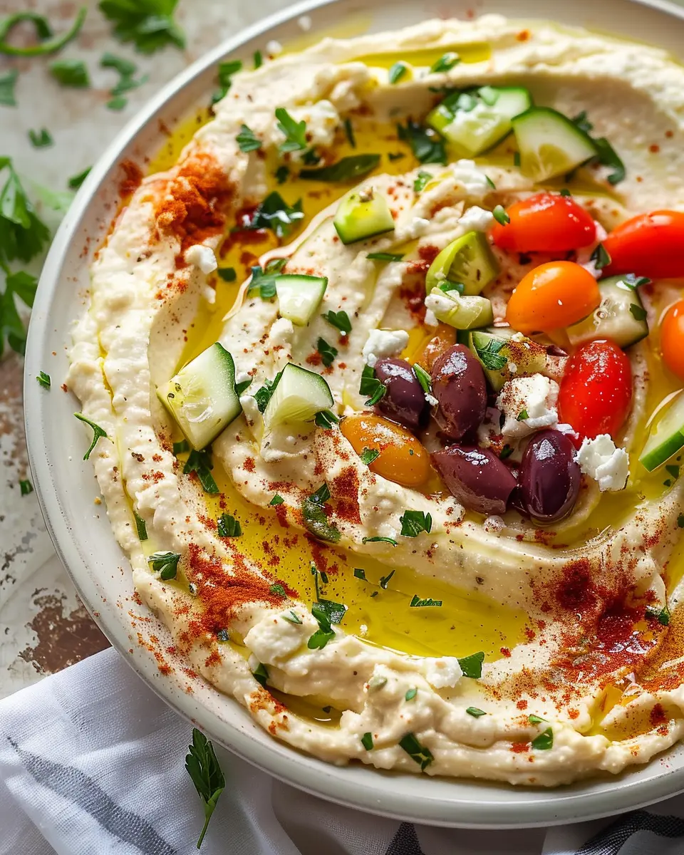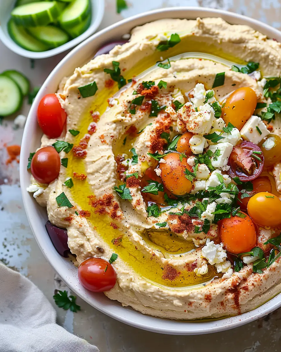 Moreover, the Mediterranean diet, which emphasizes whole, unprocessed foods, has been shown to lower the risk of chronic diseases and promote weight management. This makes dishes like Greek Style Loaded Hummus not only satisfying but also a smart choice for your overall well-being.