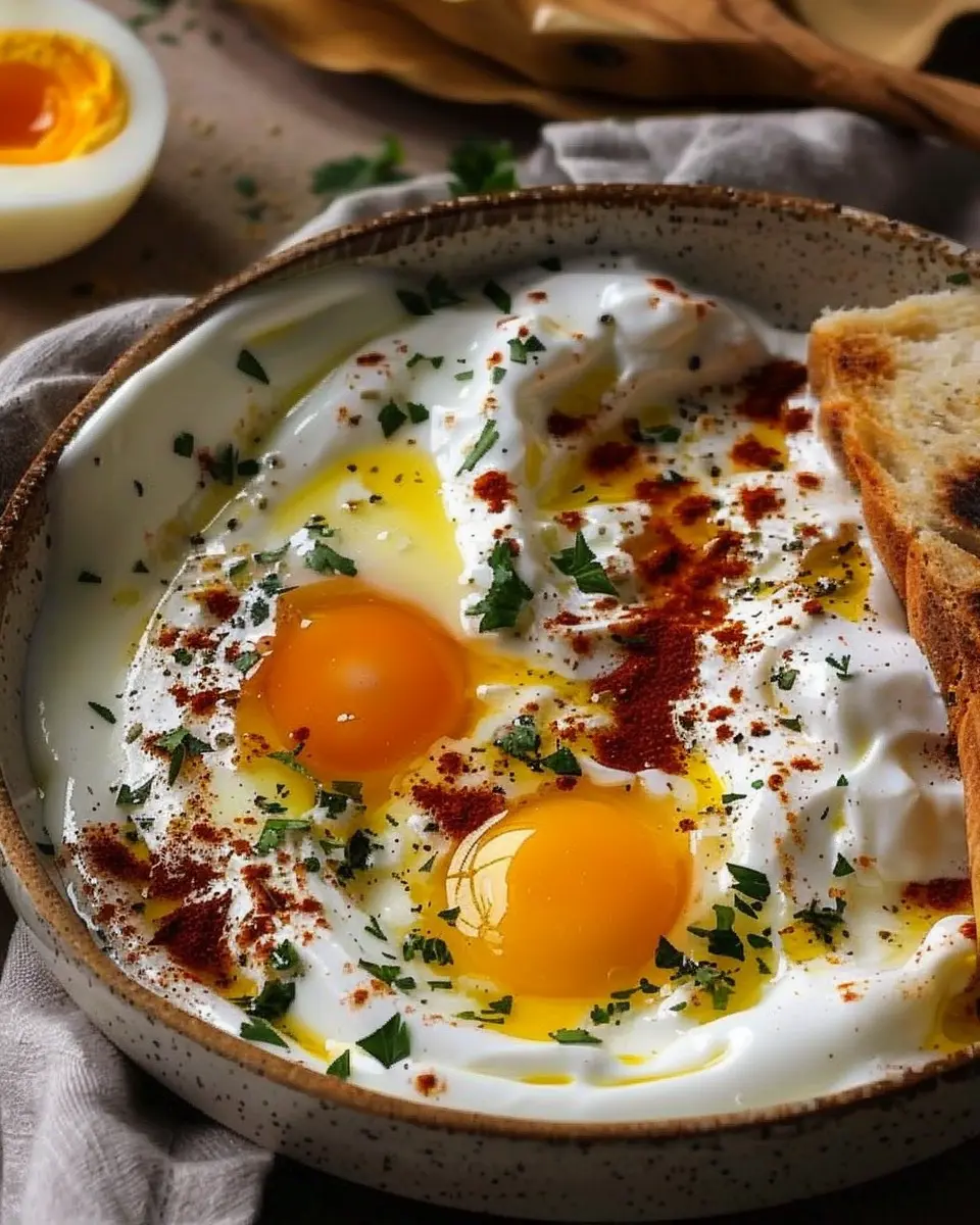 For those who crave a kick, consider sprinkling in some chili flakes. This fiery addition elevates the comforting flavor of creamy yogurt and rich butter sauce, giving it a delightful heat that contrasts beautifully with the velvety texture of the dish. Adding a dash of smoked paprika can also enrich the flavor profile. Just imagine how much more vibrant your breakfast will be with this fiery twist! You can easily adjust the spice level based on your preference, making it a great choice for both spice lovers and those who prefer a milder dish.