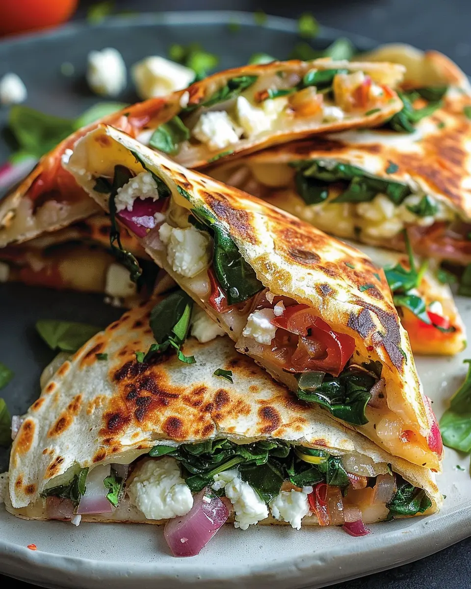 PrintMediterranean Quesadillas with Spinach: Easy Recipe for Flavor Lovers