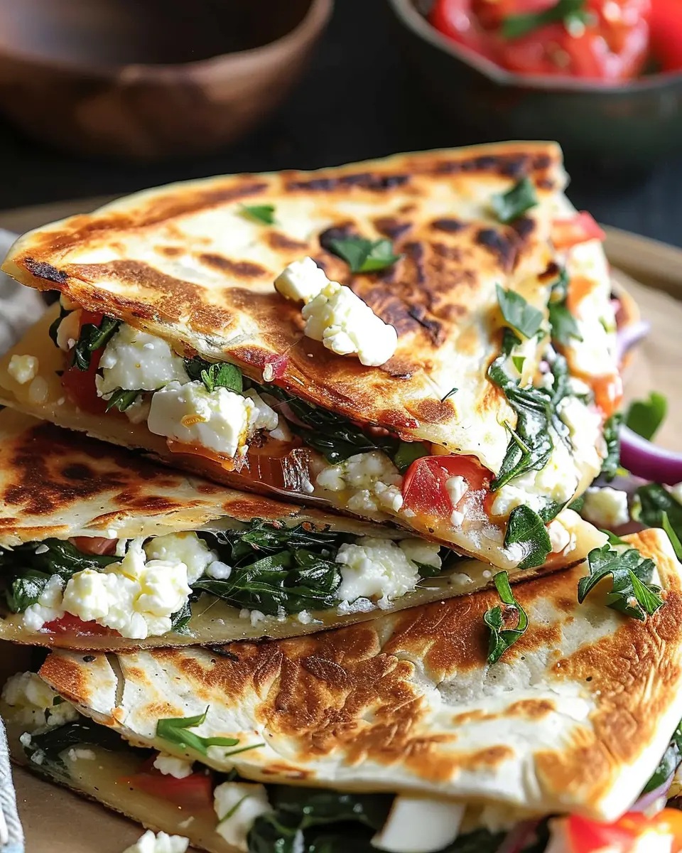 The best way to enjoy Mediterranean Quesadillas with Spinach is by balancing their rich flavors. Consider pairing them with a light, refreshing salad. A Greek salad with cucumbers, tomatoes, olives, and a drizzle of olive oil and lemon adds a crisp counterpart. Alternatively, serve them alongside a tangy tzatziki for an extra layer of flavor that complements the quesadillas beautifully. You could also explore pairing these quesadillas with a warm bowl of tomato basil soup for a comforting meal.